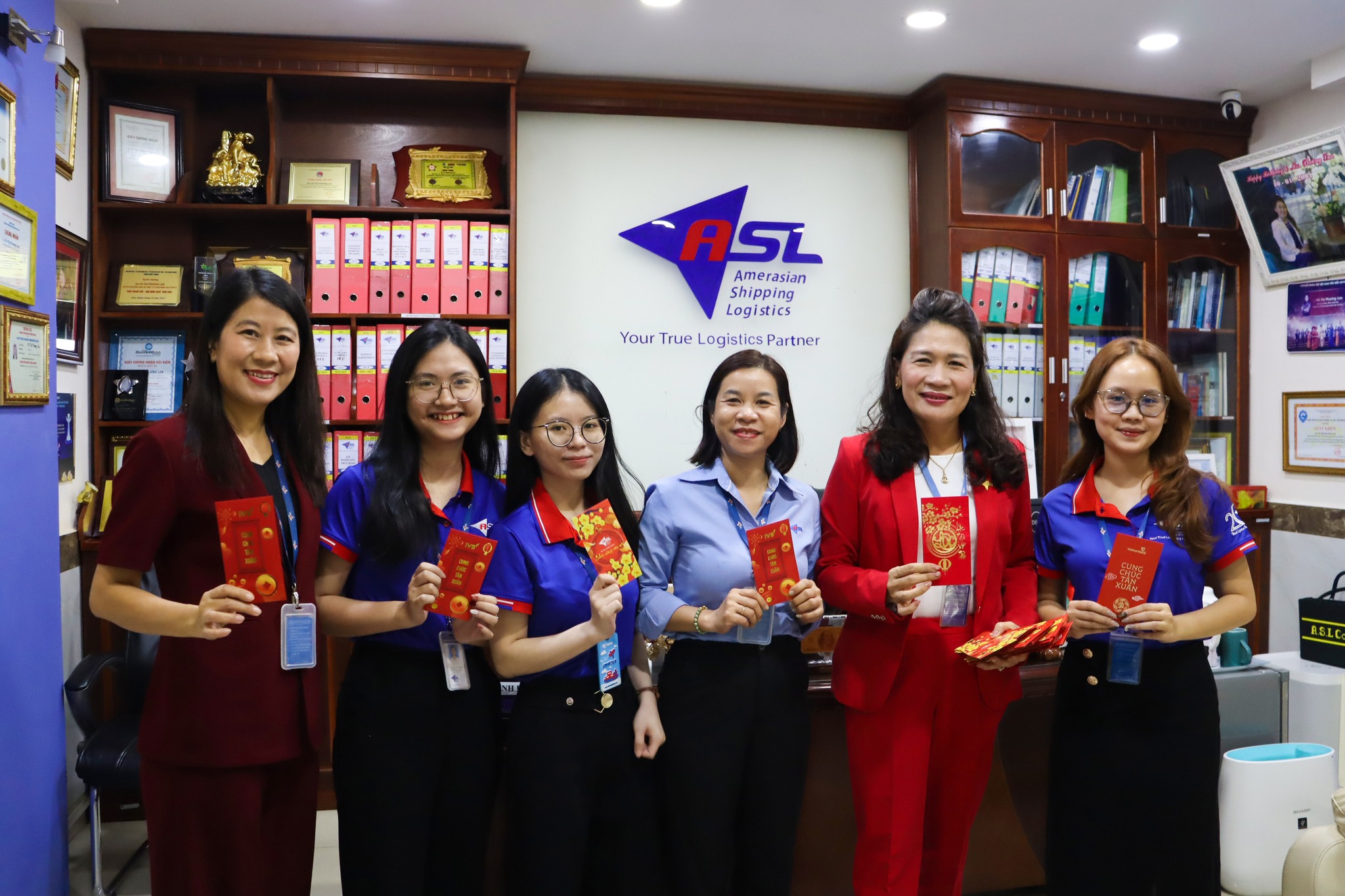 Trong không khí ấm áp của mùa xuân Bính Ngọ 2026, ngày đầu tiên trở lại văn phòng sau kỳ nghỉ Tết cổ truyền, đại gia đình ASL Logistics cùng trao nhau những lời chúc tốt đẹp nhất – những nụ cười rạng rỡ, những phong bao lì xì đỏ thắm và tinh thần khởi động năm mới đầy năng lượng.