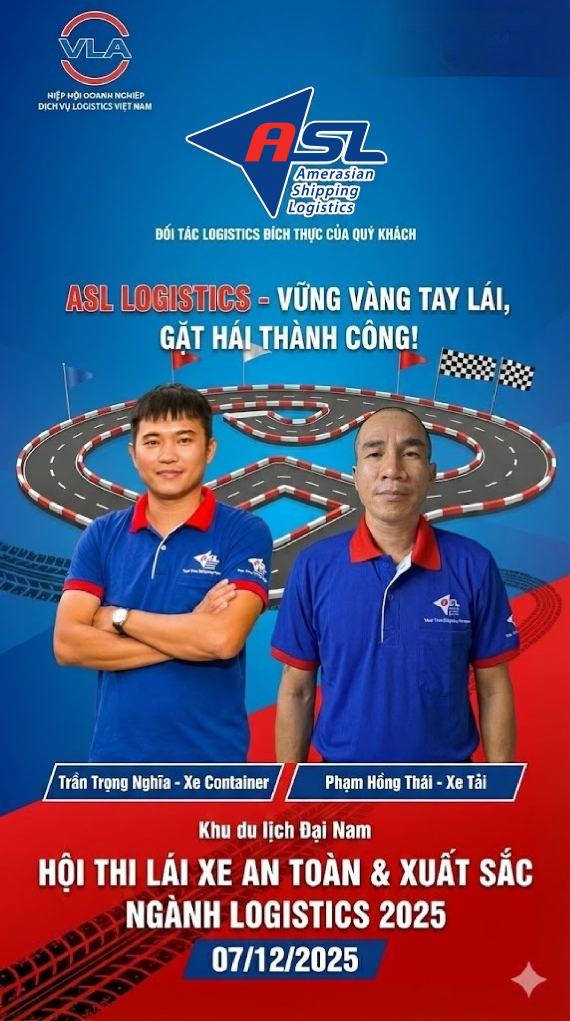 Hưởng ứng phong trào nâng cao kỹ năng nghề nghiệp và xây dựng văn hoá giao thông chuẩn mực trong ngành vận tải - logistics, ngày 07/12/2025, đoàn ASL Logistics sẽ chính thức tham gia Hội thi Lái xe An Toàn & Xuất Sắc Ngành Logistics 2025 do Hiệp hội Doanh nghiệp Dịch vụ Logistics Việt Nam (VLA) tổ chức.