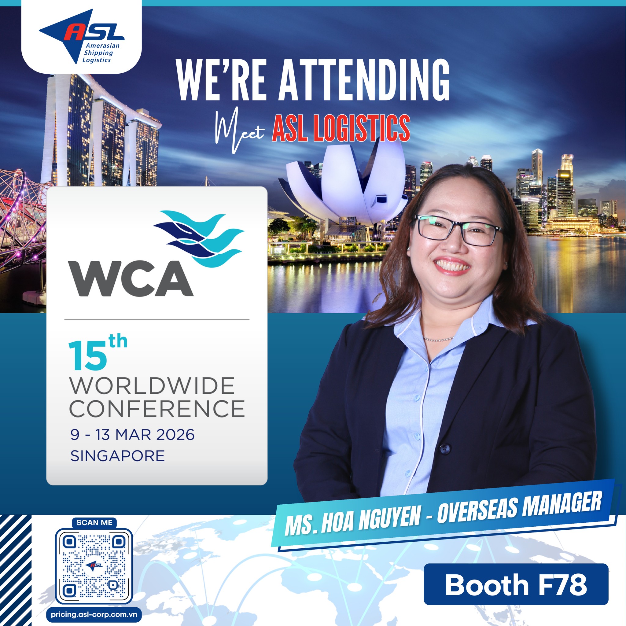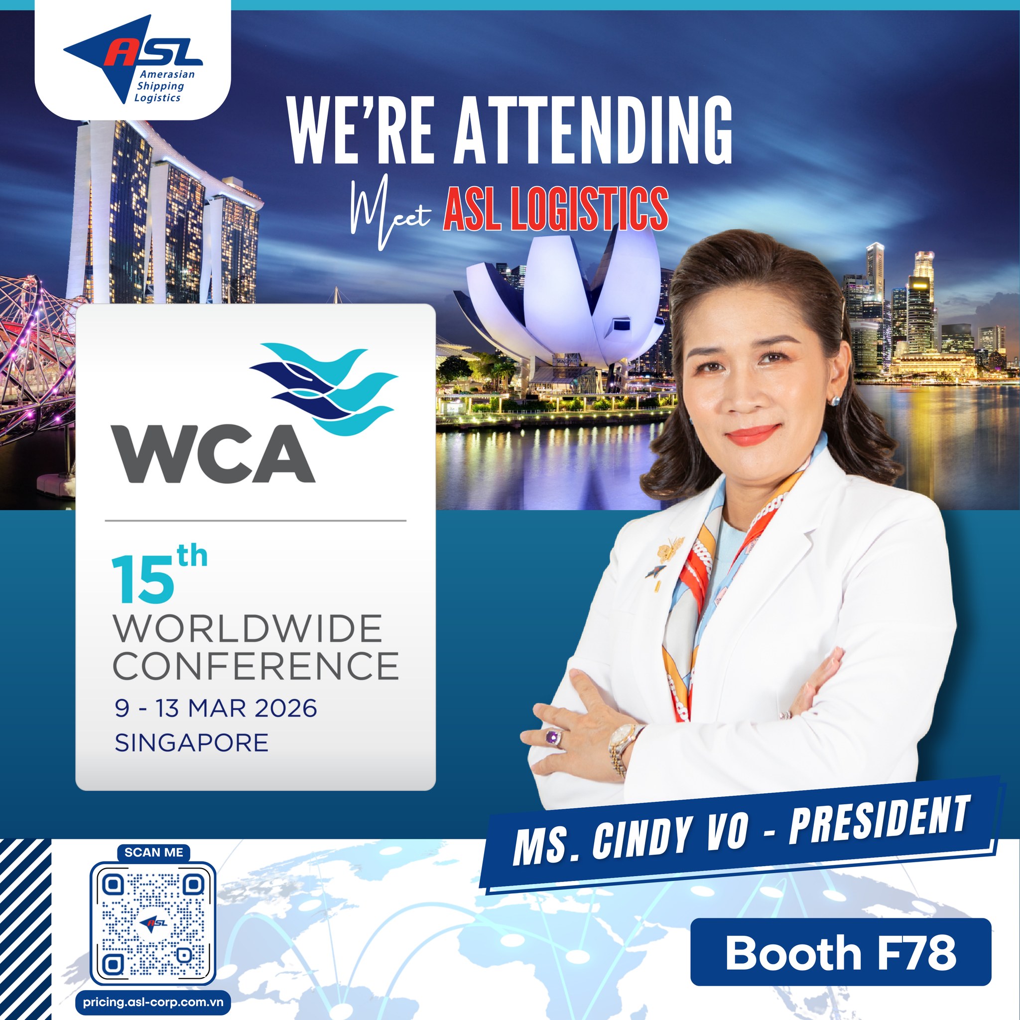 Với tinh thần kết nối – hợp tác – phát triển, ASL Logistics mong muốn thông qua WCA Worldwide Congress 2026 sẽ mở ra nhiều cơ hội giao lưu, chia sẻ kinh nghiệm và tìm kiếm giải pháp logistics xanh, bền vững cùng các đối tác quốc tế.