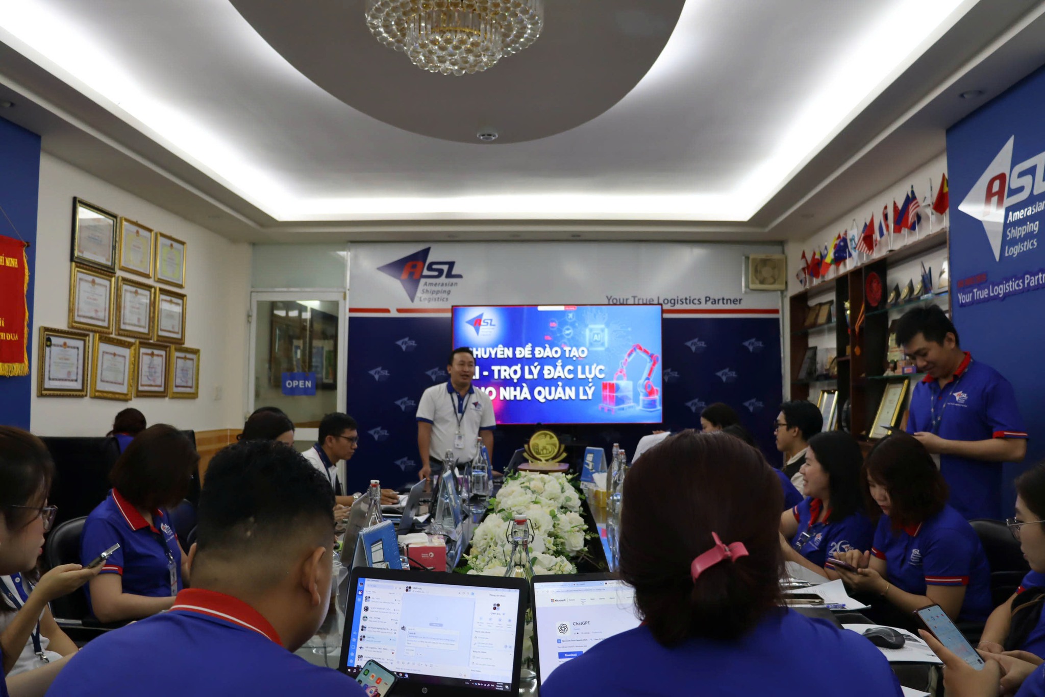 Sáng thứ Bảy 14-03, ASL Logistics đã tổ chức thành công buổi đào tạo với chuyên đề: “Ứng dụng AI – Trợ lý đắc lực cho nhà quản trị”, với sự tham gia của đội ngũ lãnh đạo và nhân sự các phòng ban, chi nhánh.