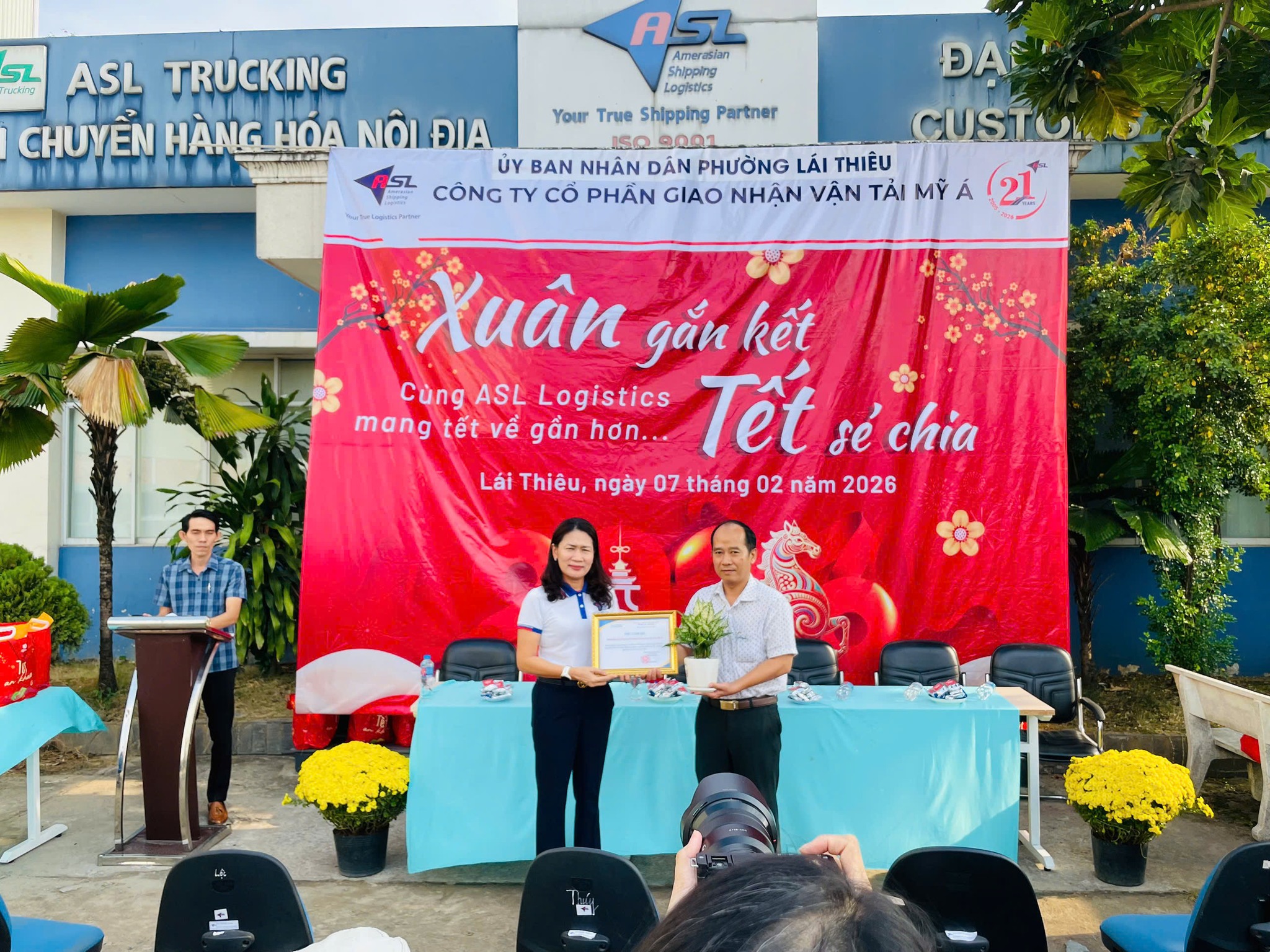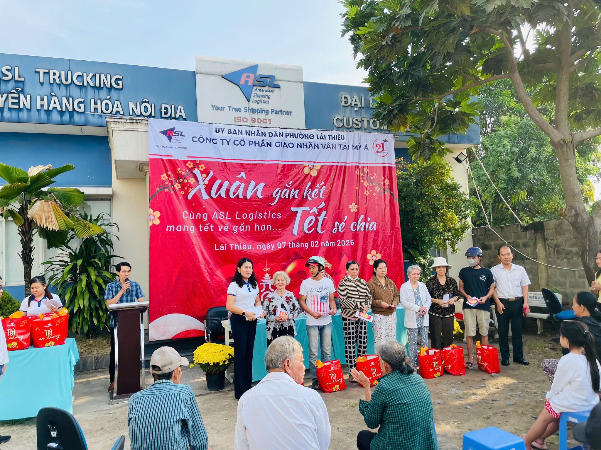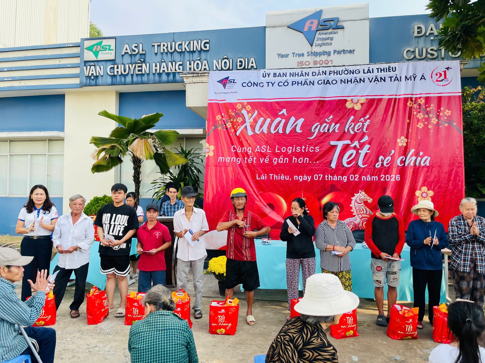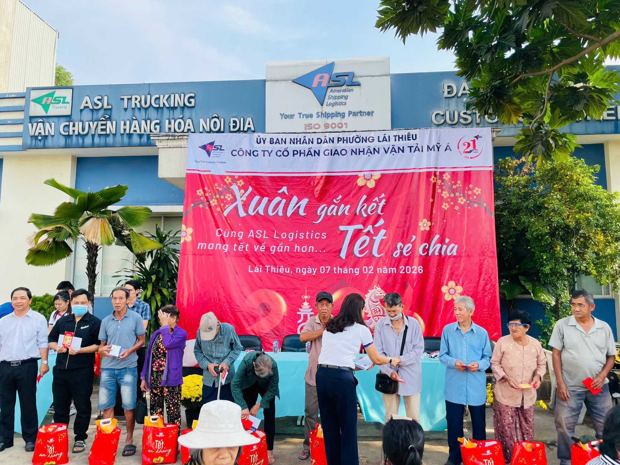 Trong không khí rộn ràng những ngày cận Tết, khi sắc xuân đang len lỏi khắp phố phường, sáng ngày 07/02/2026, ASL Logistics đã tổ chức chương trình thiện nguyện “Xuân gắn kết, Tết sẻ chia” tại Chi nhánh ASL Bình Dương (cũ), dành tặng những món quà Tết ấm áp đến bà con có hoàn cảnh khó khăn trên địa bàn phường Lái Thiêu, TP. Hồ Chí Minh.