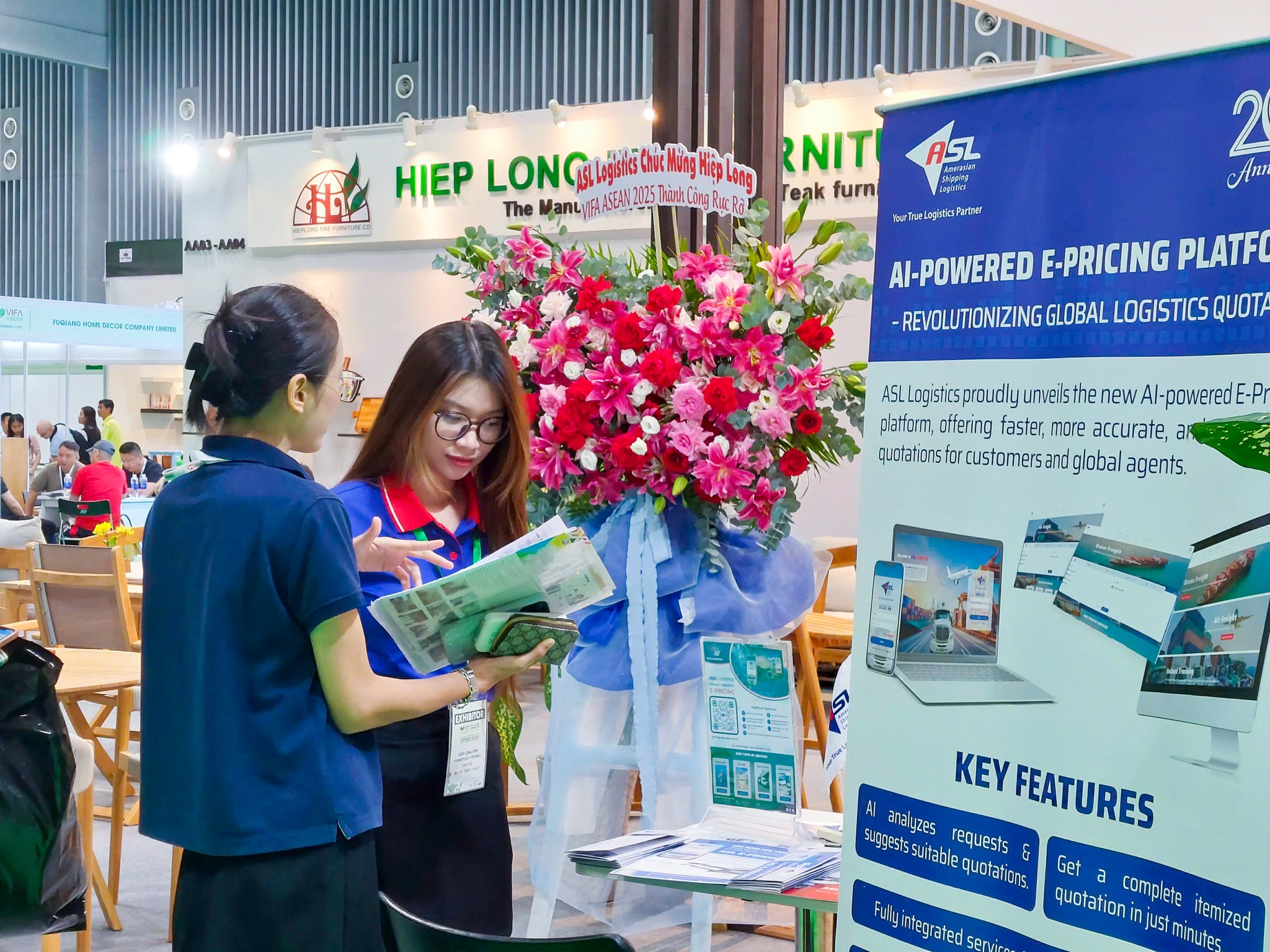 Hòa chung không khí sôi động của hơn 1.000 gian hàng tại VIFA ASEAN 2025, ASL Logistics vinh dự đồng hành cùng các doanh nghiệp sản xuất, xuất nhập khẩu đồ gỗ và nội thất trong và ngoài nước, mang đến những giải pháp logistics toàn diện và công nghệ tiên tiến.
