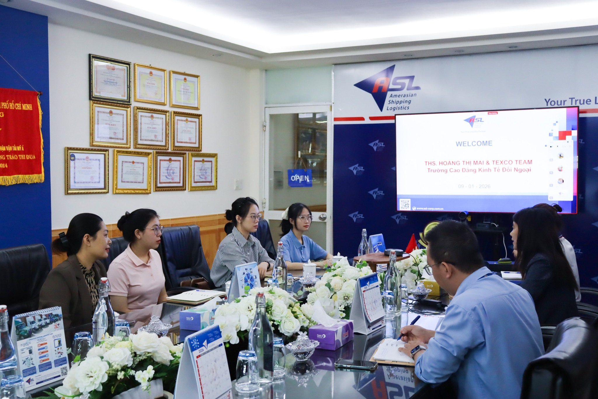 Ngày 09/01/2026, ASL Logistics đã có buổi tiếp đón và làm việc với đội thi TEXCO đến từ Cuộc thi Tài Năng Trẻ Logistics Việt Nam 2025, nhằm lắng nghe và trao đổi sâu hơn về đề tài “Ứng dụng AI – Blockchain – ORC trong bảng kê xuất khẩu đề nghị cấp C/O”. Buổi trao đổi được tổ chức với mong muốn hỗ trợ, góp ý kiến chuyên môn và từng bước cụ thể hóa ý tưởng nghiên cứu vào khả năng ứng dụng trong thực tiễn doanh nghiệp logistics.