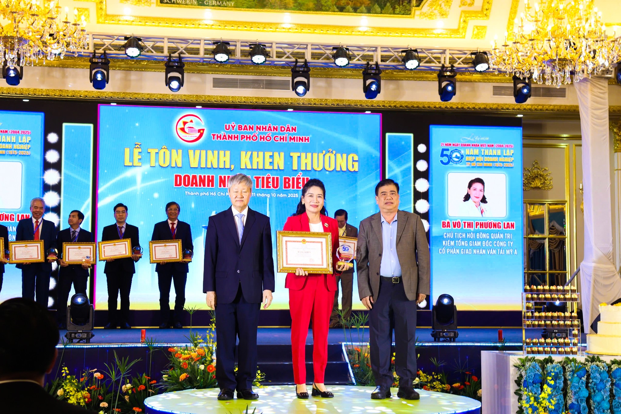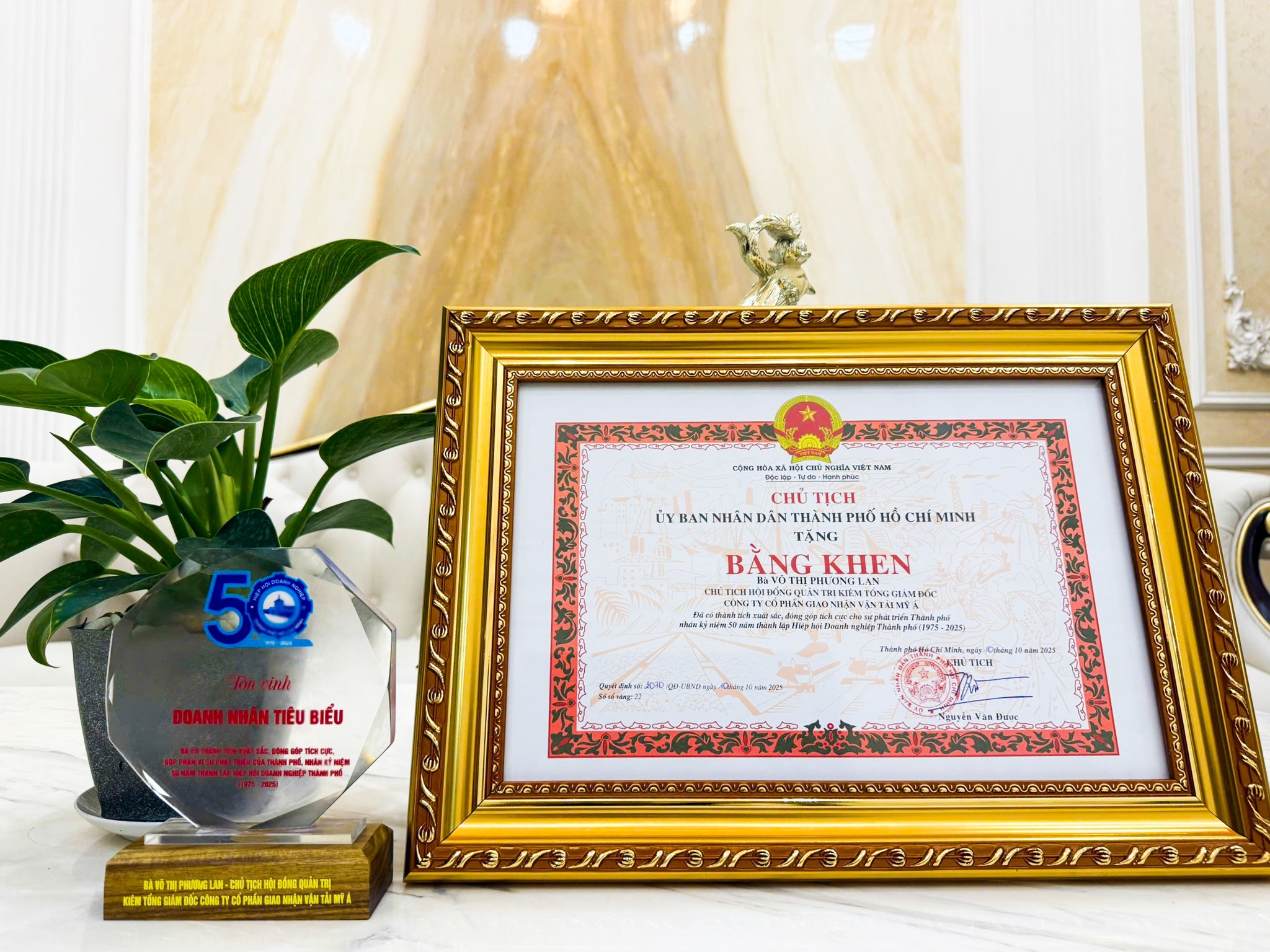 Đặc biệt, ASL Logistics vô cùng tự hào khi Bà Võ Thị Phương Lan – Chủ tịch Hội đồng Quản trị kiêm Tổng Giám đốc Công ty Cổ phần Giao nhận Vận tải Mỹ Á, vừa vinh dự được Chủ tịch Ủy ban Nhân dân TP. Hồ Chí Minh trao tặng bằng khen vì: “Đã có thành tích xuất sắc, đóng góp tích cực cho sự phát triển Thành phố nhân kỷ niệm 50 năm thành lập Hiệp hội Doanh nghiệp TP. Hồ Chí Minh (1975–2025).”