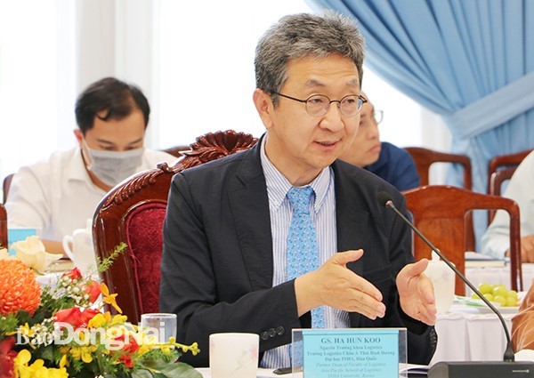 Giáo sư Ha Hun Koo phát biểu chia sẻ kinh nghiệm tại buổi hội thảo. Ảnh: Nguồn Báo Đồng Nai